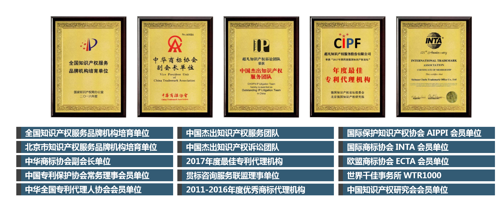 历经15年的开拓创新与品牌建设,超凡获得了多项医疗器械创新网,连续多年被评为全国知识产权服务品牌机构培育单位、北京市知识产权服务品牌机构培育单位等,常年担任中华商标协会副会长单位、中国专利保护协会常务理事单位、贯标咨询服务联盟理事单位等,多次被评为中国杰出知识产权服务团队、中国杰出知识产权诉讼团队等,连续6年获评全国优秀商标代理机构,斩获2017年度最佳专利代理机构奖项。 同时,超凡还是国际保护知识产权协会(AIPPI)会员单位、国际商标协会(INTA)会员单位、欧盟商标协会(ECTA)会员单位,连续多年当选世界“千佳”事务所(WTR1000)。超凡与世界上200多个国家或地区的知识产权专业机构建立了互惠合作关系,形成了覆盖全球的知识产权服务网络。超凡立足于中国,发挥自己独特的国际经验与资源优势,为全球不同需求的客户提供全方位、国际水平的知识产权全产业链服务。